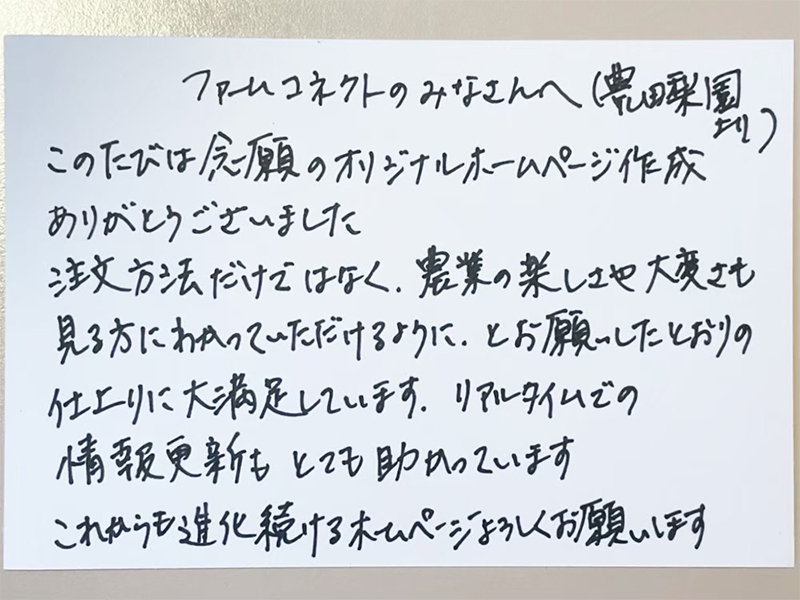 - 例年多数のお客様にご来店いただいており予約で完売するケースが多かったものの、販売状況をお伝えする手段がなかった。また、栽培のこだわり、苦労を伝える機会がなかった。